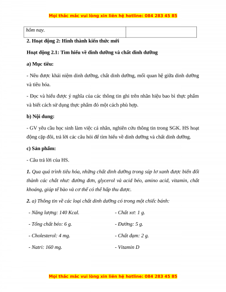 động cặp đôi, trả lời các câu hỏi để tìm hiểu về dinh dưỡng và chất dinh dưỡng. c) Sản phẩm: - Câu trả lời của HS.