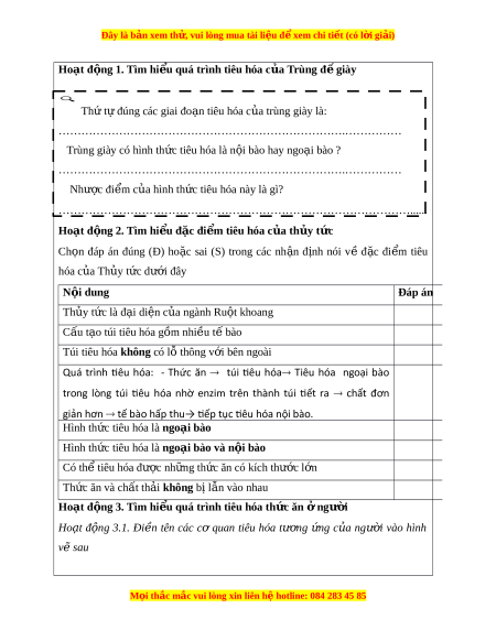 Đây là bản xem th , vu ử i lòng mua tài li u ệ đ xe ể m chi ti t (c ế ó l i ờ gi i ả ) Phi u h ế c t ọ p s â 1 ố 1. Quan sát sơ đô k t ê h p v ợ i ơ thông tin SGK, cho bi t ê : - Dinh dư ng l ơ