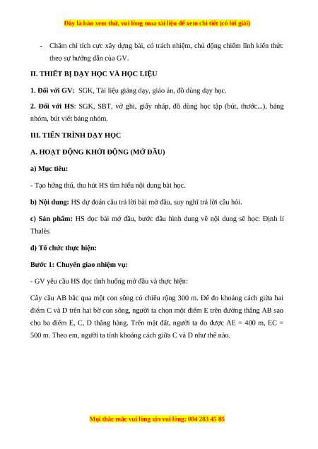 c) Sản phẩm: HS đọc bài mở đầu, bước đầu hình dung về nội dung sẽ học: Định lí Thalès