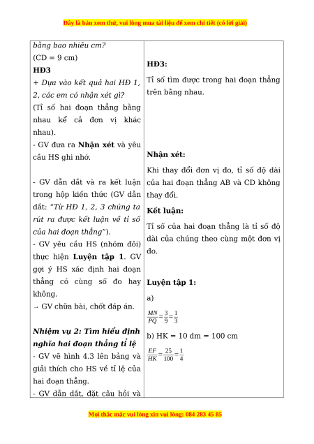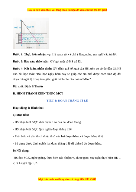 - Sử dụng được định nghĩa hai đoạn thẳng tỉ lệ để tính số đo đoạn thẳng. b) Nội dung: