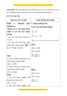 - HS nhận biết được khái niệm tỉ số của hai đoạn thẳng.