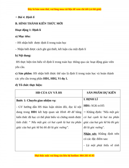 ‒ Nhận biết được cách ghi giả thiết, kết luận của một định lí b) Nội dung: