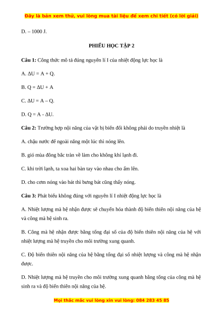 D. – 1000 J. PHIẾU HỌC TẬP 2