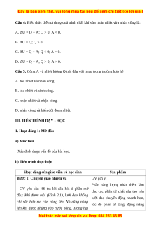 Câu 3: Phát biểu không đúng với nguyên lí I nhiệt động lực học là
