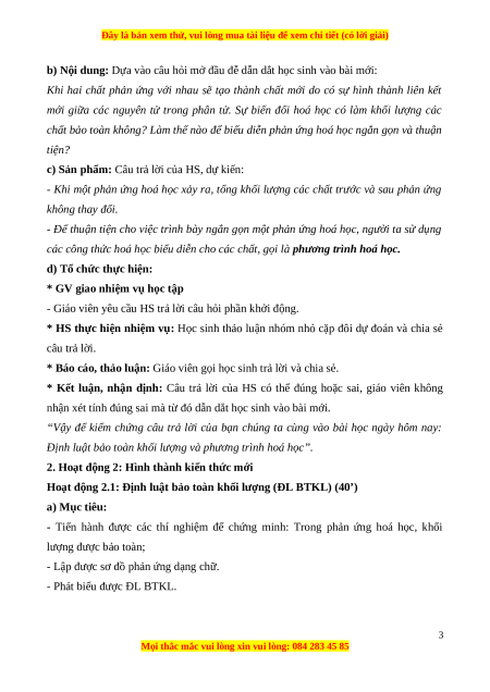 BÀI 3: ĐỊNH LUẬT BẢO TOÀN KHỐI LƯỢNG
