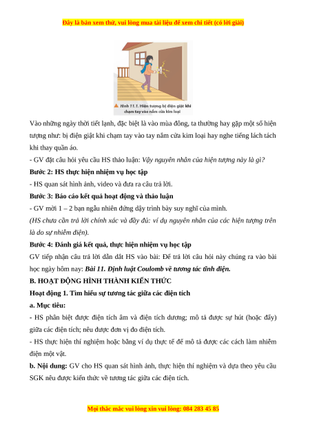 Hoạt động 1. Tìm hiểu sự tương tác giữa các điện tích a. Mục tiêu: