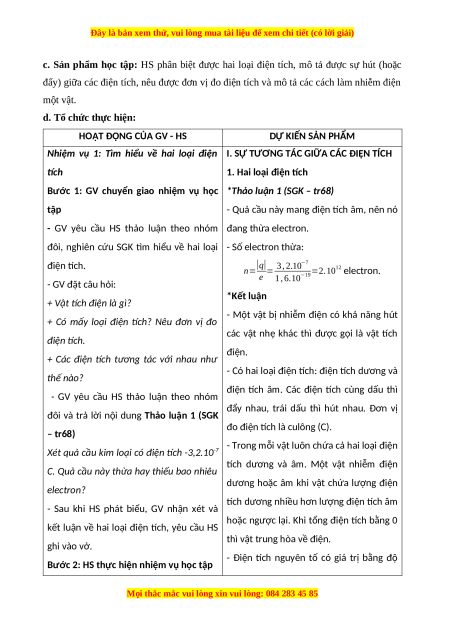 đôi, nghiên cứu SGK tìm hiểu về hai loại - Số electron thừa: điện tích. |q|
