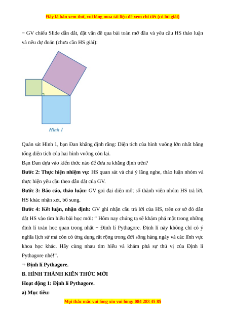 BÀI 1. ĐỊNH LÍ PYTHAGORE (2 tiết) I. MỤC TIÊU: