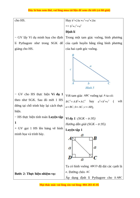 − Vận dụng định lí Pythagore để giải quyết một số bài toán có liên quan.