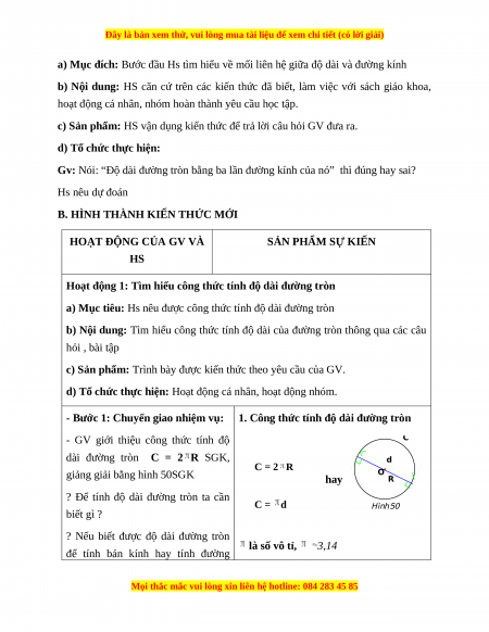 a) Mục đích: Bước đầu Hs tìm hiểu về mối liên hệ giữa độ dài và đường kính