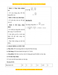 - Vận dụng công thức tính độ dài đường tròn C = 2 R giải bài tập áp dụng.