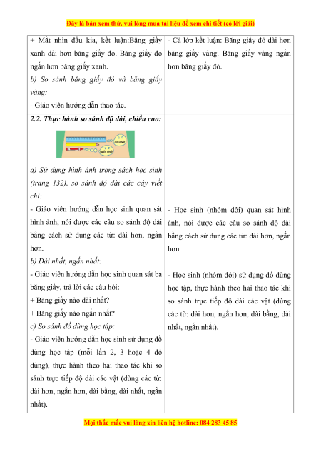 2.2. Thực hành so sánh độ dài, chiều cao: