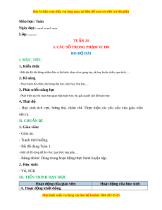 Ngày dạy: ....../ ....../ ...... L p: ớ ......... TUẦN 24 3. CÁC S Ố TRONG PH M Ạ VI 100 ĐO Đ D Ộ ÀI I. M C Ụ TIÊU 1. Ki n t ế h c ứ