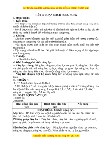 ợ cách bố trí thí nghi m ệ và ti n ế hành thí nghi m ệ ki m ể tra l i ạ các hệ th c s ứ uy ra t l ừ í thuy t ế đ i ố v i ớ đo n ạ m ch s ạ ong song. Phư ng ơ pháp d y ạ h c: ọ D y ạ h c ọ nhóm; d y ạ h c ọ nêu và gi i ả quy t ế v n ấ đề; phư ng ơ pháp thuy t ế trình; s d ử ng đ ụ ồ dung tr c ự quan Đ nh h ị ư ng phá ớ t tri n năng l ể c: ự Năng l c t ự h c ự nghi m ệ , năng l c ự quan sát, năng l c ự sáng t o, ạ năng l c t ự rao đ i ổ . Ph m ẩ ch t ấ t t ự in, t l ự p, gi ậ ao ti p. ế 1. Hi u đ ể ư c đo ợ n m ạ ch g ạ m ồ hai đi n t ệ r s ở ong song - Yêu c u