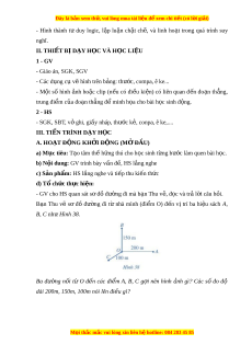 II. THIẾT BỊ DẠY H C Ọ VÀ H C Ọ LI U Ệ 1 - GV - Giáo án, SGK, SGV - Các d ng c ụ ụ vẽ hình trên b ng: ả thư c, ớ compa, ê ke... - M t ộ số hình nh ả ho c ặ clip (n u ế có đi u ề ki n) ệ có liên quan đ n ế đo n ạ th ng, ẳ trung đi m ể c a ủ đo n t ạ h ng ẳ đ m ể inh h a cho bài ọ h c ọ sinh đ ng. ộ 2 - HS - SGK, SBT, v ghi ở , gi y nháp, t ấ hư c k ớ , conpa, ê ẻ ke,....