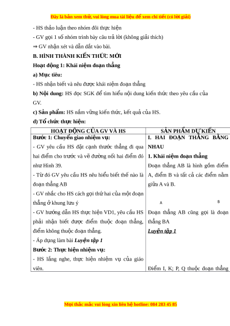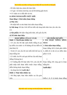 B. HÌNH THÀNH KI N Ế TH C Ứ M I Ớ Hoạt đ ng 1: ộ Khái ni m ệ đo n t ạ h ng ẳ a) M c t ụ iêu: - HS nh n ậ bi t ế và nêu đư c ợ khái ni m ệ đo n ạ th ng ẳ b) N i ộ dung: HS đ c ọ SGK để tìm hi u ể n i ộ dung ki n ế th c ứ theo yêu c u ầ c a ủ GV. c) Sản ph m ẩ : HS n m ắ v ng ki ữ n t ế h c, ứ k t ế qu c ả a ủ HS.