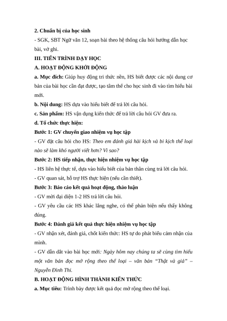 một văn bản đọc mở rộng theo thể loại – văn bản “Thật và giả” – Nguyễn Đình Thi.