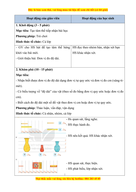 - Giới thiệu bài: Đơn vị đo độ dài. 2. Khám phá (10 - 15 phút) Mục tiêu: