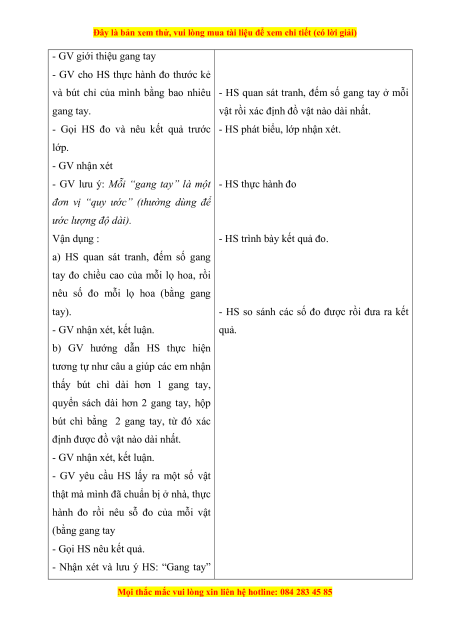 Đây là bản xem thử, vui lòng mua tài liệu để xem chi tiết (có lời giải) - GV giới thiệu gang tay