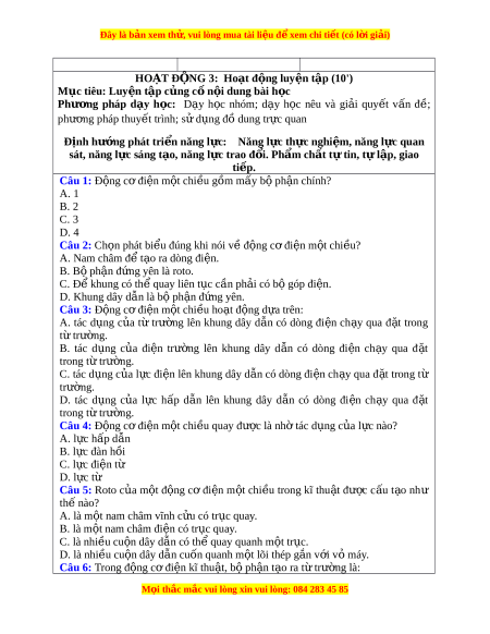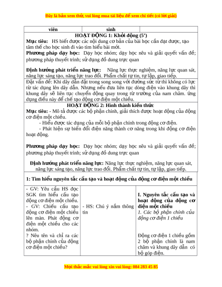 ệ năng thành cơ năng trong khi đ ng ộ cơ đi n ệ ho t ạ đ ng. ộ Phư ng ơ pháp d y ạ h c: ọ D y ạ h c ọ nhóm; d y ạ h c ọ nêu và gi i ả quy t ế v n ấ đề; phư ng ơ pháp thuy t ế trình; s d ử ng đ ụ ồ dung tr c ự quan Đ nh h ị ư ng ớ phát tri n năng l ể c ự : Năng l c t ự h c nghi ự m ệ , năng l c quan s ự át, năng l c s ự áng t o, năng l ạ c ự trao đ i ổ . Ph m ẩ ch t ấ t t ự in, t l ự p, ậ giao ti p. ế 1: Tìm hi u n ể