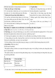- Giao tiếp và hợp tác: Thảo luận nhóm thực hiện thí nghiệm về vật dẫn điện và vật không dẫn điện