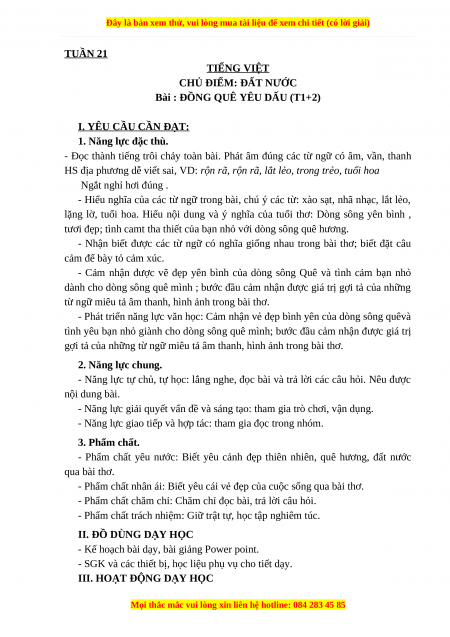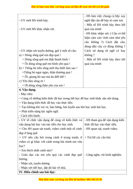 - Phát triển năng lực văn học: Cảm nhận vẻ đẹp bình yên của dòng sông quêvà