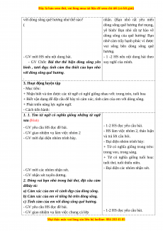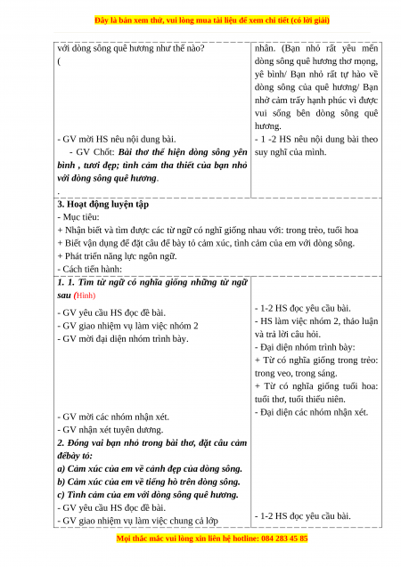 + Nhận biết và tìm được các từ ngữ có nghĩ giống nhau với: trong trẻo, tuổi hoa