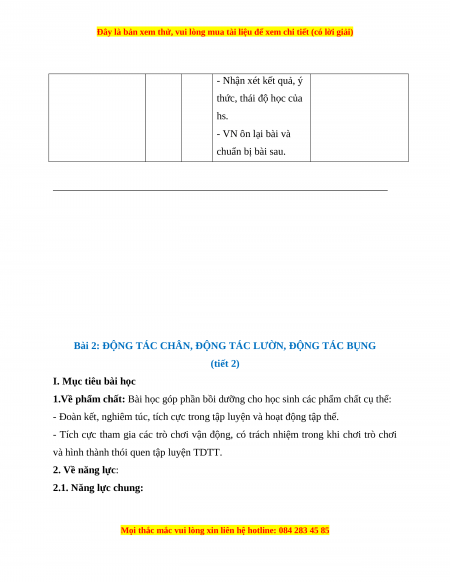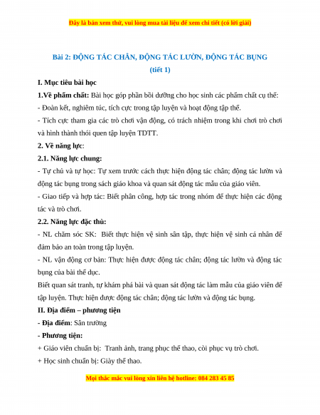 Bài 2: ĐỘNG TÁC CHÂN, ĐỘNG TÁC LƯỜN, ĐỘNG TÁC BỤNG (tiết 1)