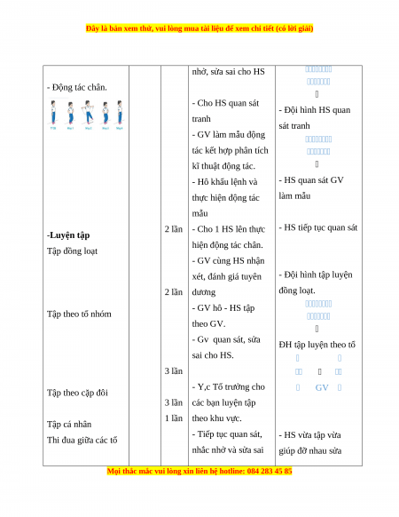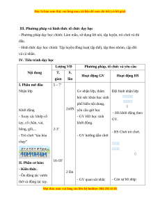 - Phương pháp dạy học chính: Làm mẫu, sử dụng lời nói, tập luyện, trò chơi và thi