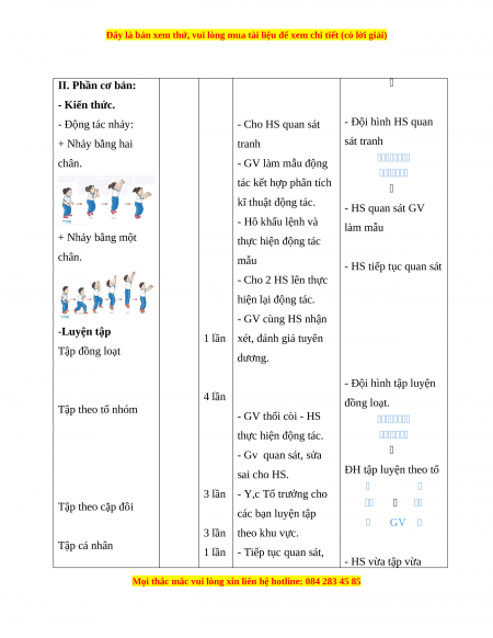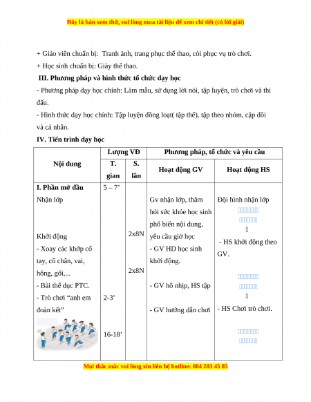 - Phương pháp dạy học chính: Làm mẫu, sử dụng lời nói, tập luyện, trò chơi và thi đấu.