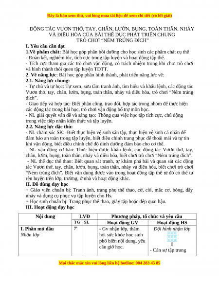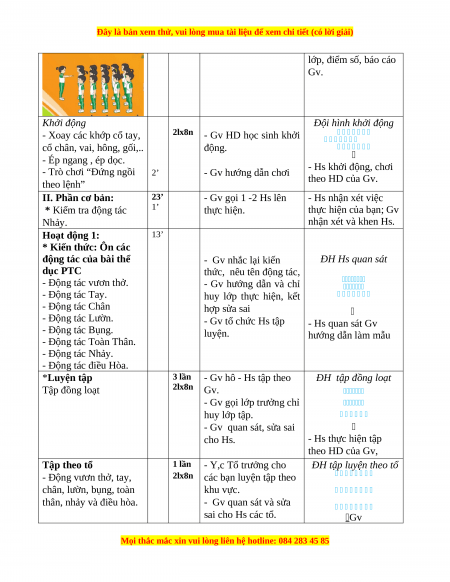 Giáo án Động tác vươn, thở, tay, chân, lườn, bụng, toàn thân, nhảy và điều hòa của bài thể dục phát triển chung Gdtc 3 Chân trời sáng tạo