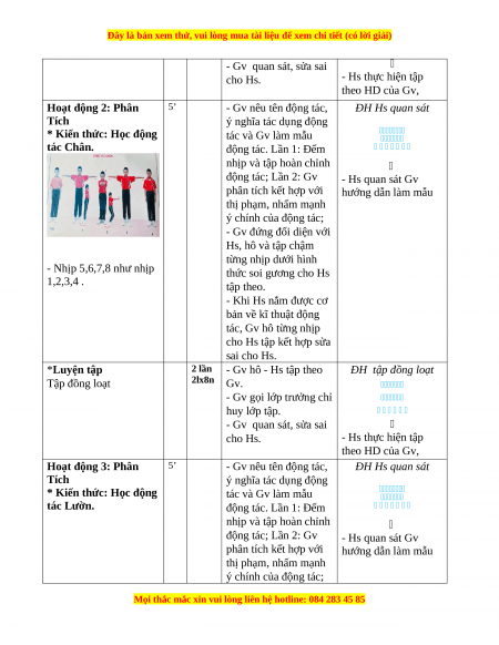 nhịp và tập hoàn chỉnh động tác; Lần 2: Gv - Hs quan sát Gv phân tích kết hợp với hướng dẫn làm mẫu thị phạm, nhấm mạnh ý chính của động tác;