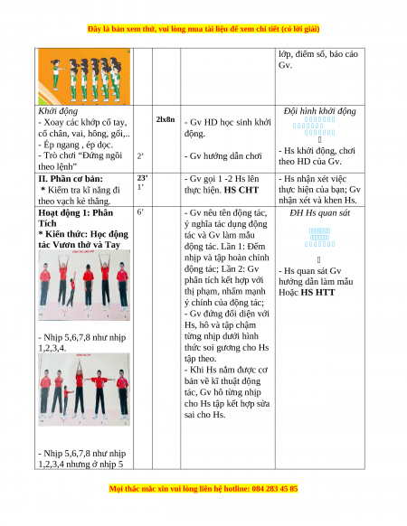 + Học sinh chuẩn bị: Trang phục thể thao, giày tập hoặc dép quai hậu.
