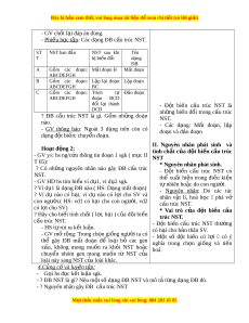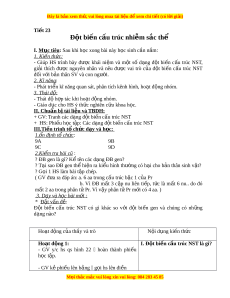 năng quan sát, phân tích kênh hình, ho t ạ đ ng nhóm ộ . 3. Thái đ : ộ - Thái đ h ộ p t ợ ác khi ho t ạ đ ng nhóm ộ . - Giáo d c cho ụ HS ý th c ứ nghiên c u khoa h ứ c. ọ II. Chu n b ẩ t ị ài li u và ệ TBDH: + GV: Tranh các d ng ạ đ t ộ bi n c ế u t ấ rúc NST + HS: Phi u h ế c t ọ p: ậ Các d ng ạ đ t ộ bi n c ế u t ấ rúc NST III.Ti n t ế rình t ch ổ c d ứ y và h ạ c: ọ