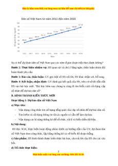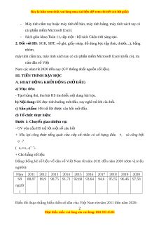 ầ tay, máy tính xách tay có cài ph n ầ m m ề Microsoft Excel (n u ế có), tra c u ứ dân s ố Vi t ệ Nam các năm t ừ 2020 đ n ế nay (GV th n ố g nh t ấ ngu n ồ s ố li u ệ ). III. TI N Ế TRÌNH D Y Ạ H C Ọ A. HOẠT ĐỘNG KH I Ở Đ N Ộ G (M Ở Đ U Ầ ) a) M c ụ tiêu: - T o ạ h n