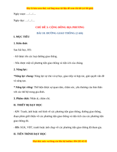 BÀI 10: ĐƯỜNG GIAO THÔNG (2 tiết) I. MỤC TIÊU 1. Kiến thức Sau bài học, HS: