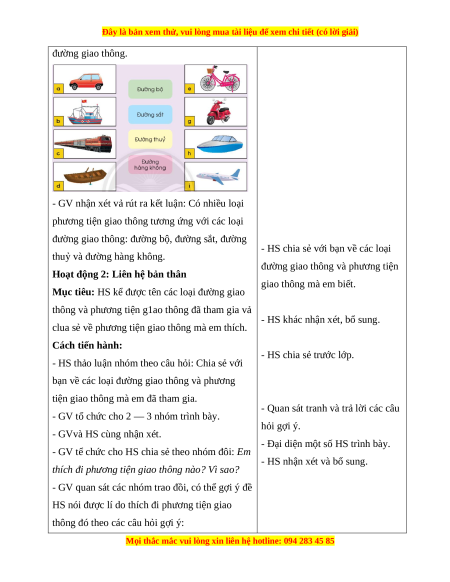 Hoạt động 2: Liên hệ bản thân giao thông mà em biết.