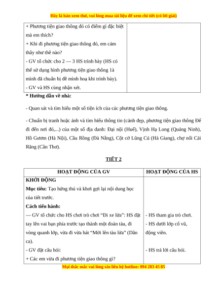 clua sẻ về phương tiện giao thông mà em thích. Cách tiến hành: - HS chia sẻ trước lớp.