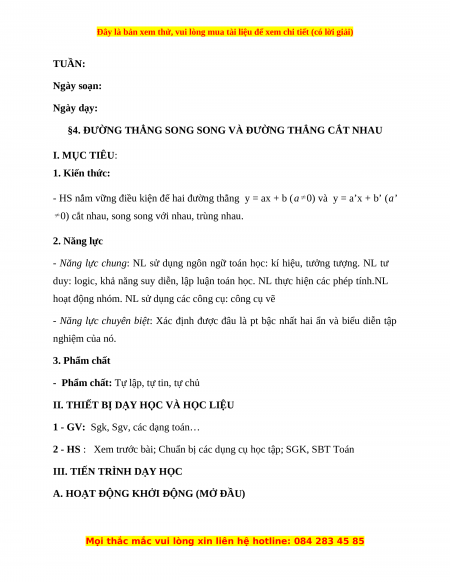 0) cắt nhau, song song với nhau, trùng nhau. 2. Năng lực