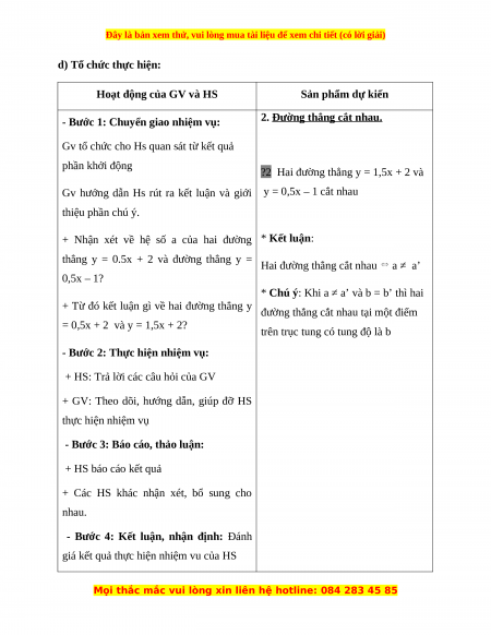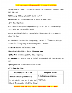 - HS nắm vững điều kiện để hai đường thẳng y = ax + b (a 0) và y = a’x + b’ (a’