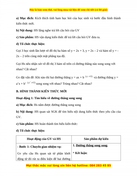 Giáo án Đường thẳng song song và đường thẳng cắt nhau Toán 9 Học kì 1