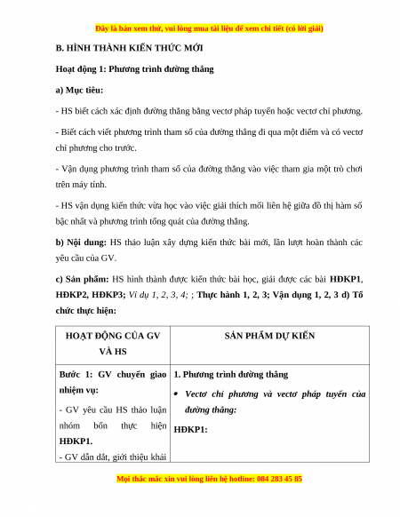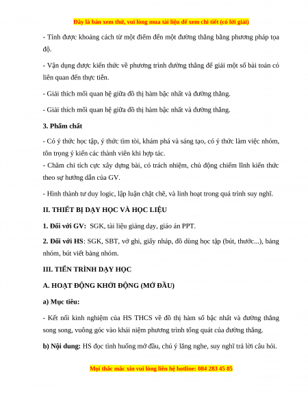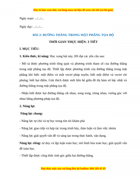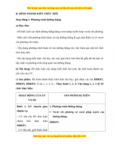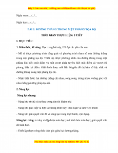 Giáo án đường thẳng trong mặt phẳng tọa độ Toán 10 Chân trời sáng tạo