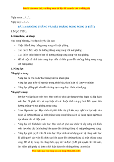 Giáo án Đường thẳng và mặt phẳng song song Toán 11 Kết nối tri thức