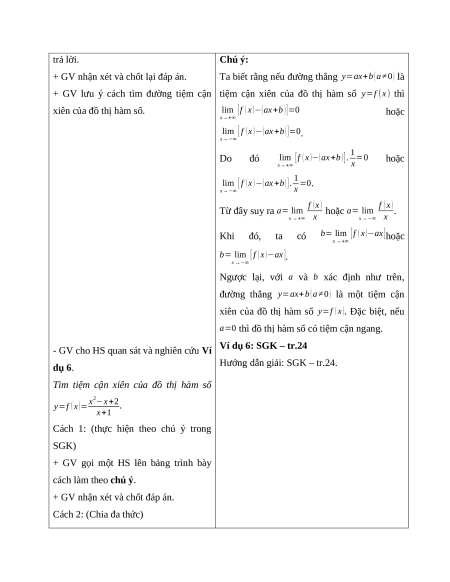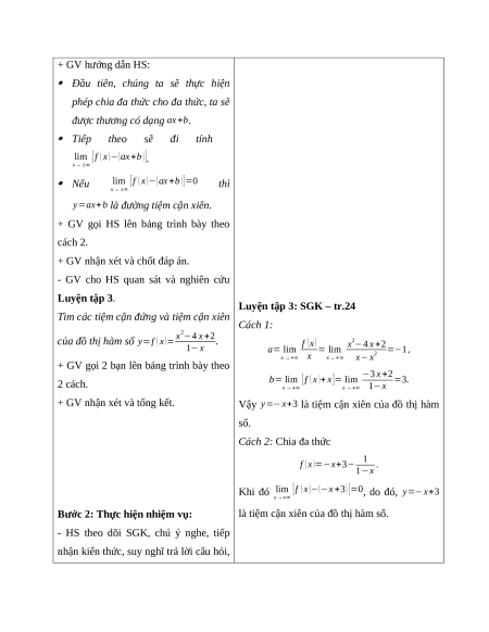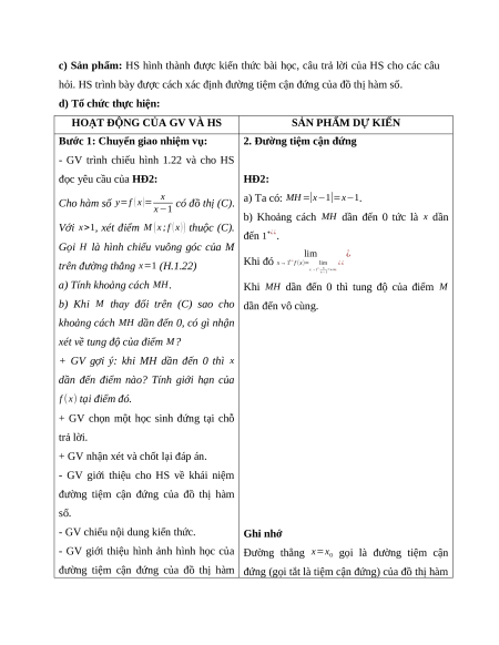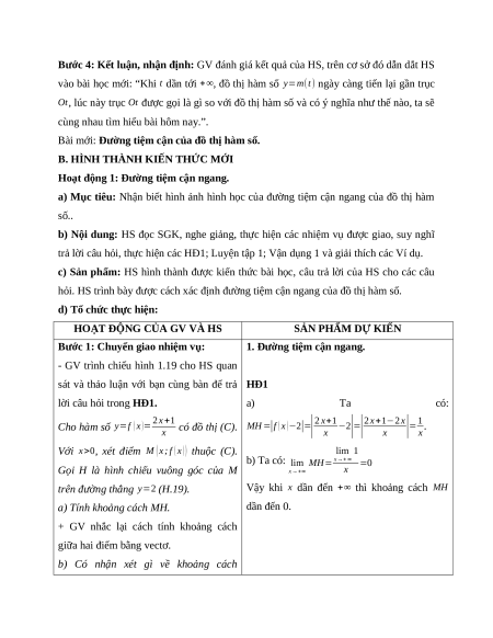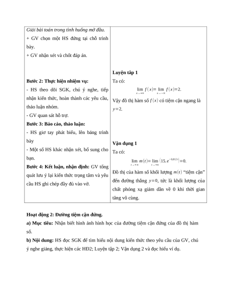 Giáo án Đường tiệm cận của đồ thị hàm số Toán 12 Kết nối tri thức