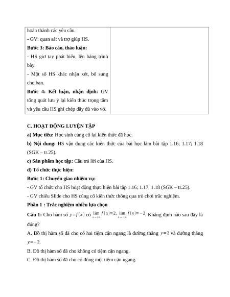 hỏi. HS trình bày được cách xác định đường tiệm cận ngang của đồ thị hàm số.