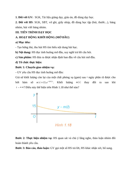 vào bài học mới: “Khi t dần tới +∞, đồ thị hàm số y=m(t) ngày càng tiến lại gần trục