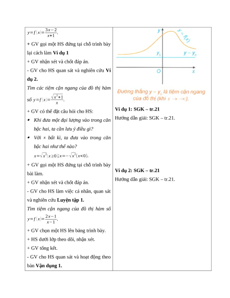- GV giới thiệu hình ảnh hình học của ngang (gọi tắt là tiệm cận ngang) của đồ thị