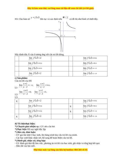 Chuyển giao - GV dẫn dắt từ bài toán để hình thành khái niệm đường tiệm cận đứng.