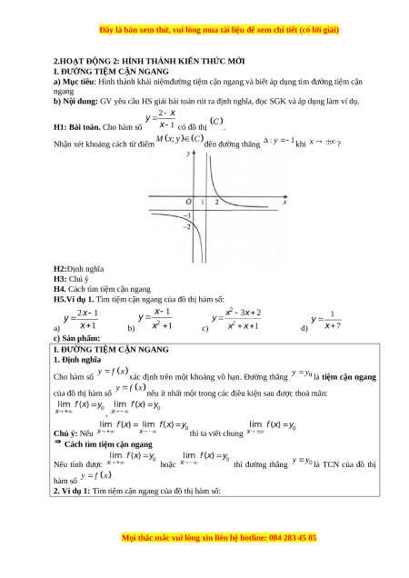 - GV dẫn dắt từ bài toán để hình thành khái niệm đường tiệm cận ngang.