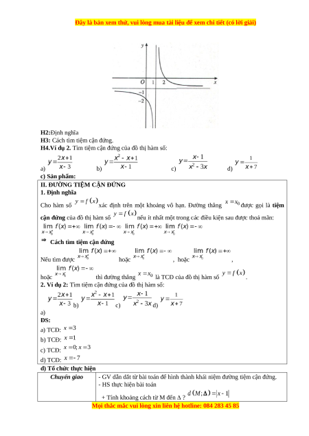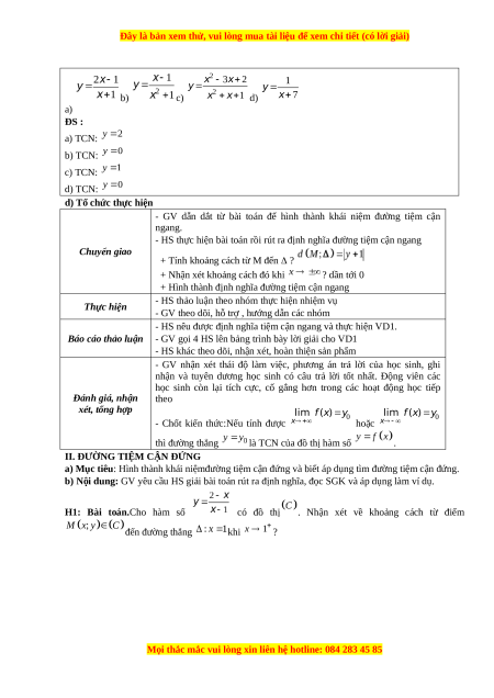 - GV dẫn dắt từ bài toán để hình thành khái niệm đường tiệm cận